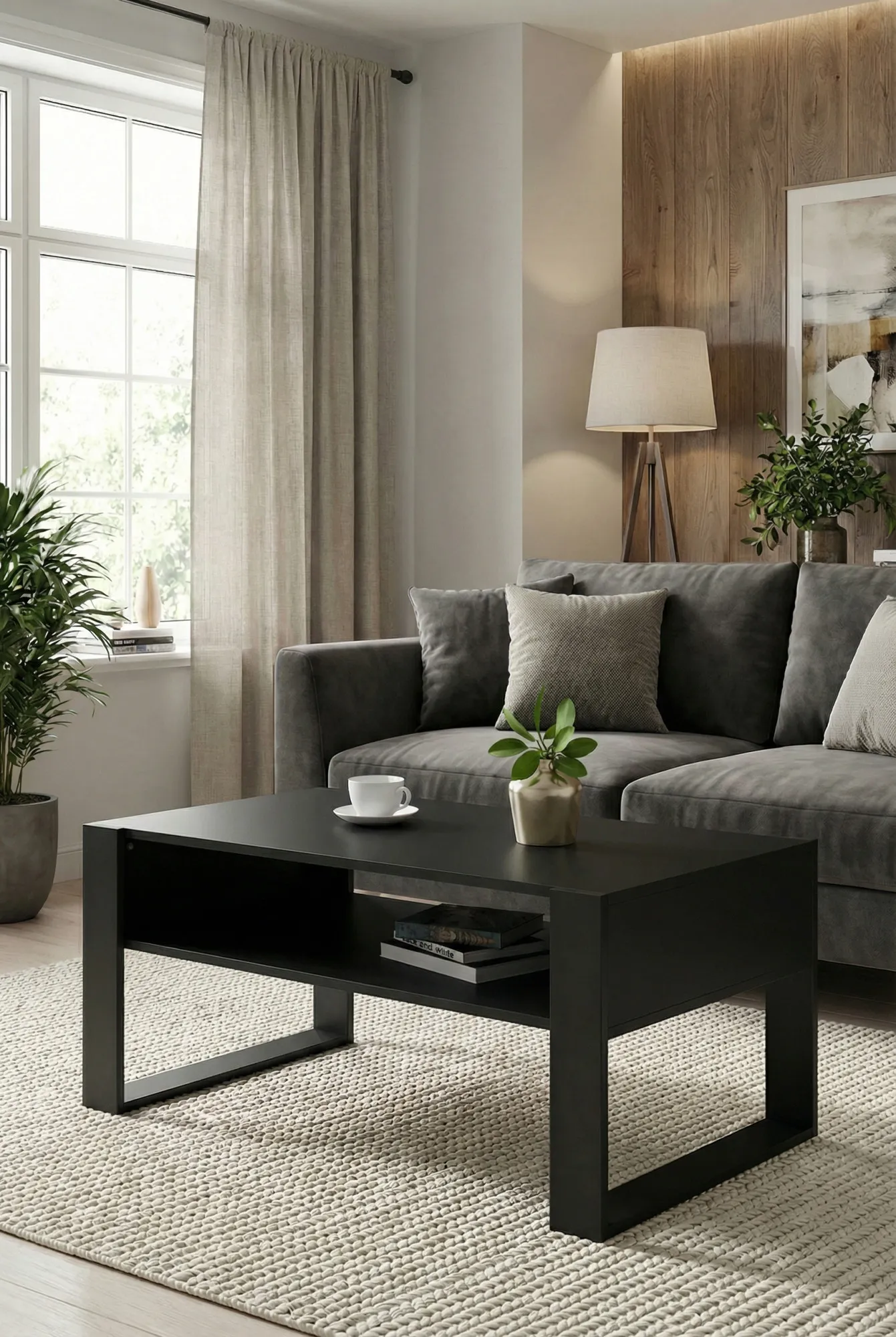 Dotyczy: Ława z półką do salonu dąb artisan + czarny - Bracio 3X
