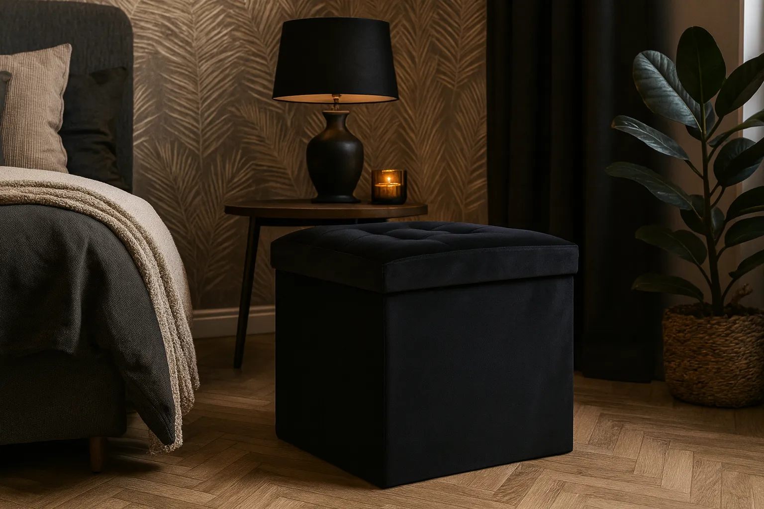 Dotyczy: Granatowa pikowana kwadratowa pufa składana - Astros