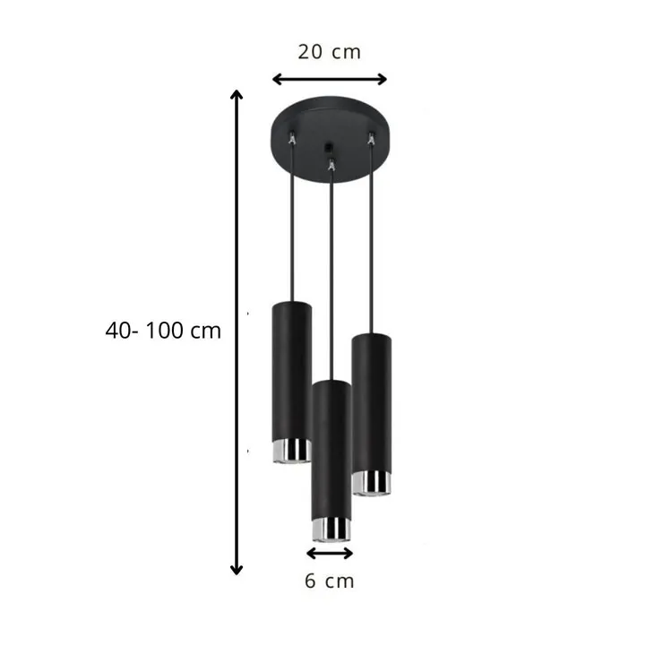 Czarna lampa wisząca potrójna tuba nad stół S688-Rayon