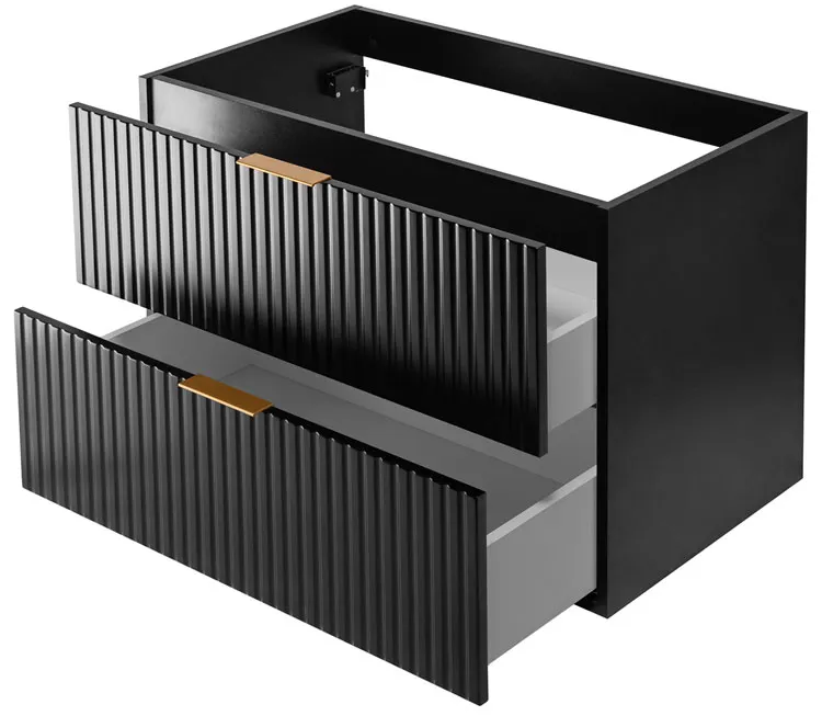 - Fronty wykonane z frezowanej płyty MDF 16 mm zapewniają trwałość i dekoracyjny wygląd. Ryflowana powierzchnia dodaje głębi i elegancji.