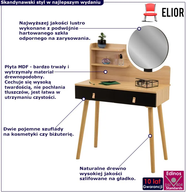 • kompaktowy design toaletki idealnie dopasuje się do wnętrza sypialni