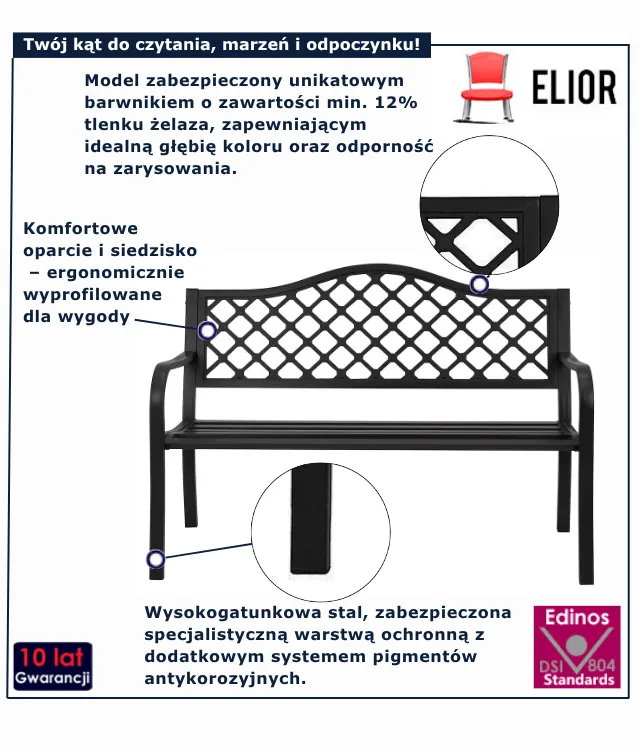 Letnie popołudnie w cieniu drzew, poranna kawa w parku, chwila relaksu po ciężkim dniu – ławka ogrodowa marki Edinos Premium to Twój osobisty azyl na świeżym powietrzu. Solidna i wygodna, stanie się ulubionym miejscem spotkań w ogrodzie, na tarasie czy w przestrzeni miejskiej. Dzięki klasycznemu designowi pasuje do każdego otoczenia, a jej wyjątkowa trwałość sprawia, że będzie służyć przez lata. Warto mieć takiego miejsca, gdzie możesz zwolnić tempo i cieszyć się chwilą dla siebie.