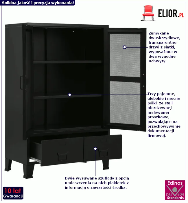 • Kolor: czarny. Kliknij w link i sprawdź także inne szafy biurowe w sklepie Edinos.pl. Stwórz swój praktyczny zestaw mebli.