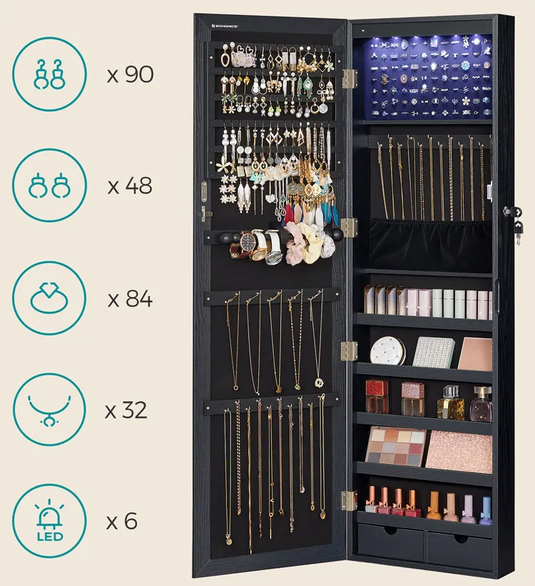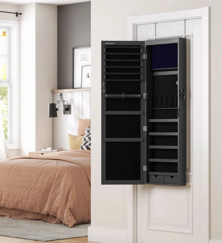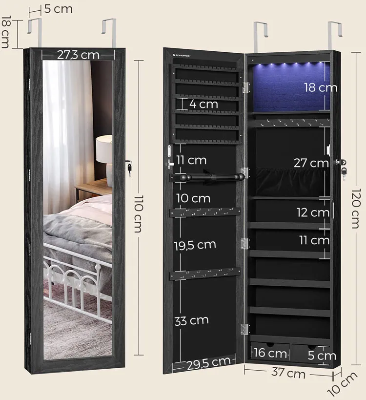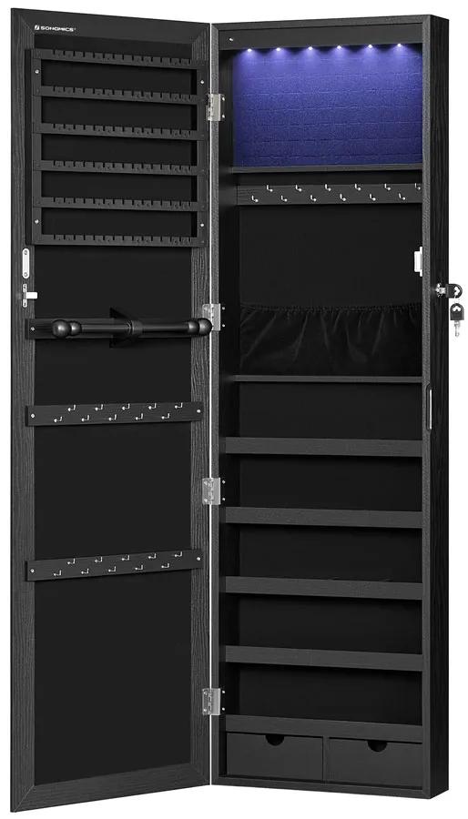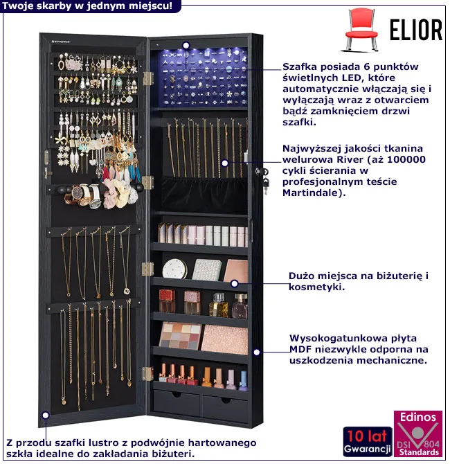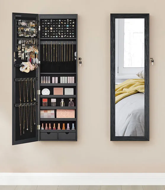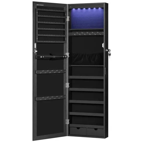 Czarna szafka na biżuterię z lustrem na drzwi - Huśtawka