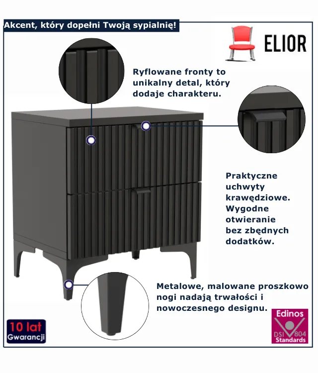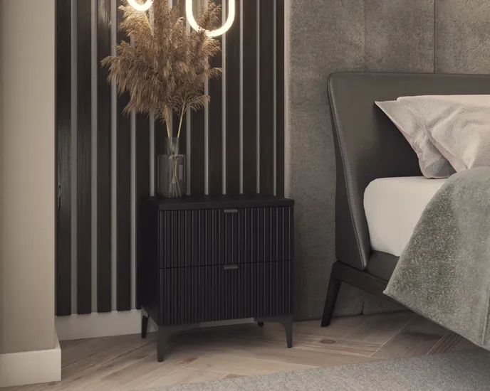 Dotyczy: Czarny stolik nocny z drewnianymi lamelami - Mafi 3X