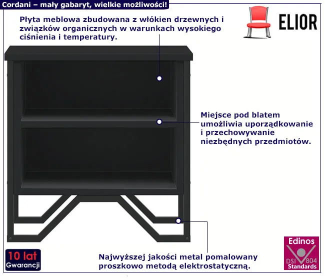 • metalowy stelaż zapewnia nowoczesny wygląd i stabilność