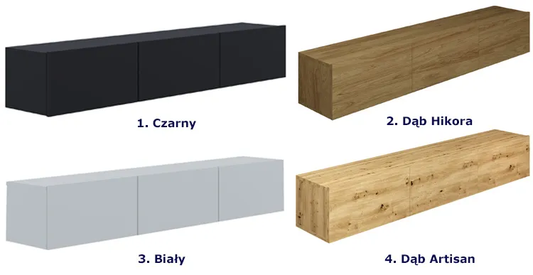 Zobacz wszystkie kolory wiszącej szafki RTV Elorones 4X i wybierz tę, która najbardziej przypadnie Ci do gustu.