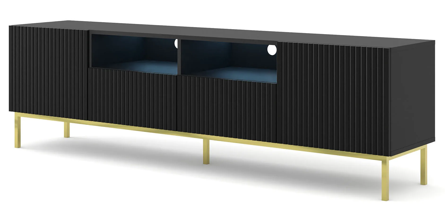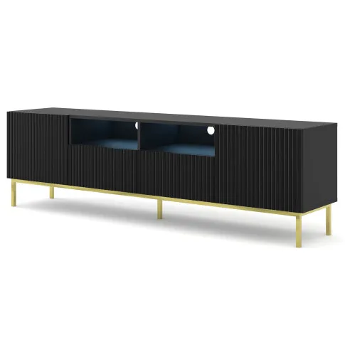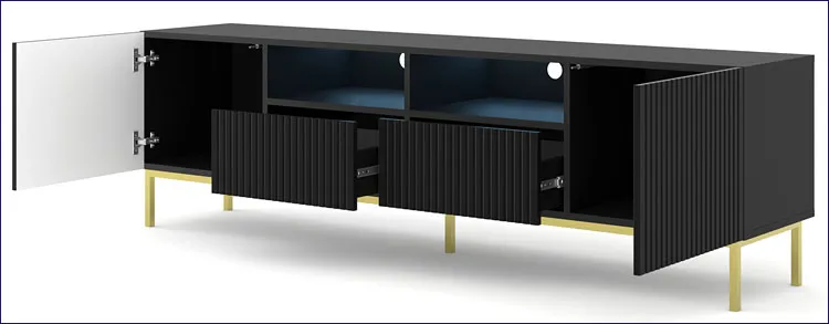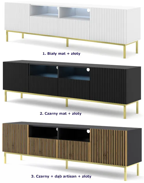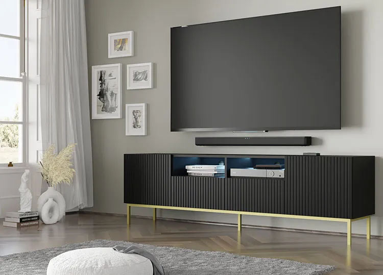 Dotyczy: Lamelowa szafka rtv z szufladami czarny + dąb artisan - Melis 11X