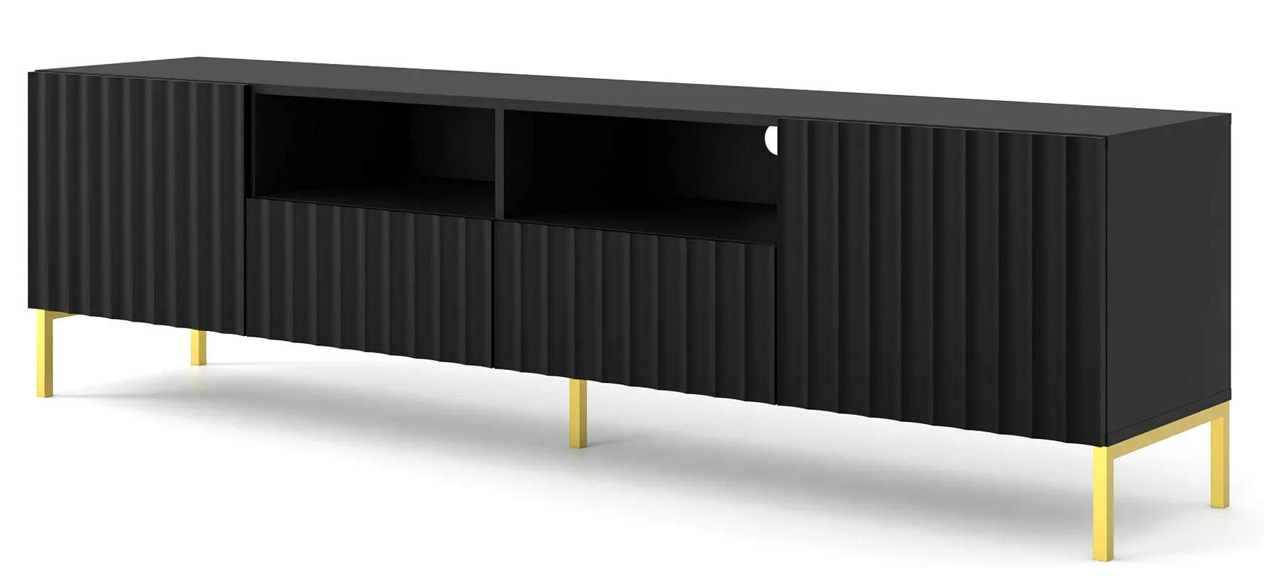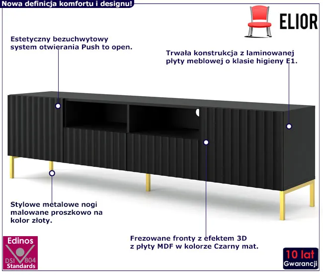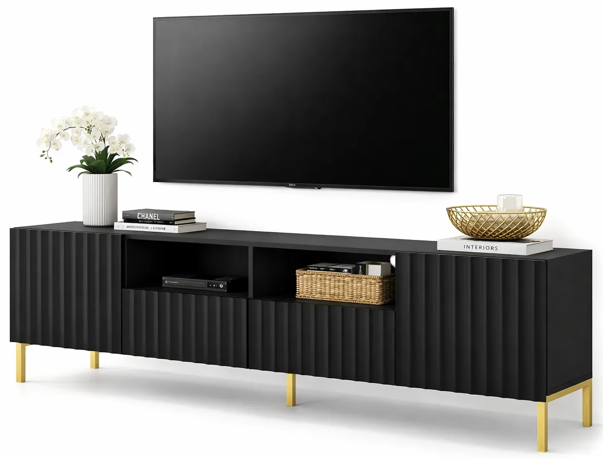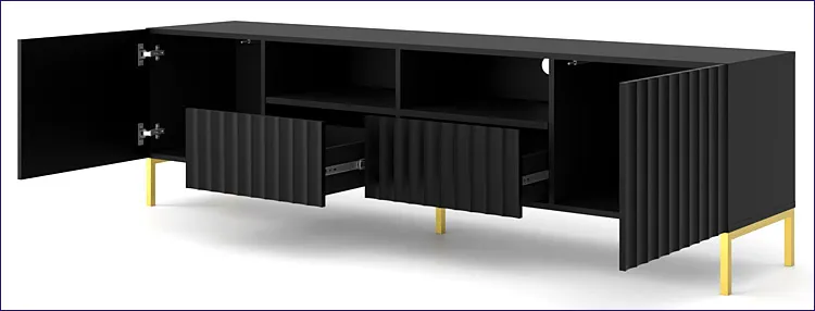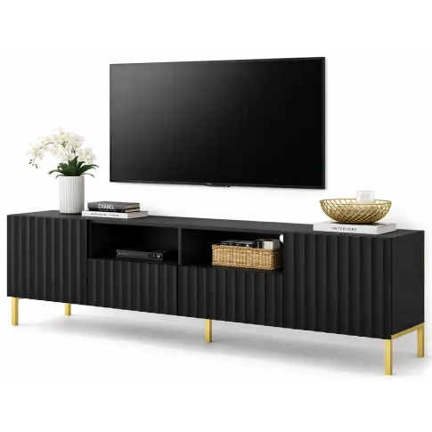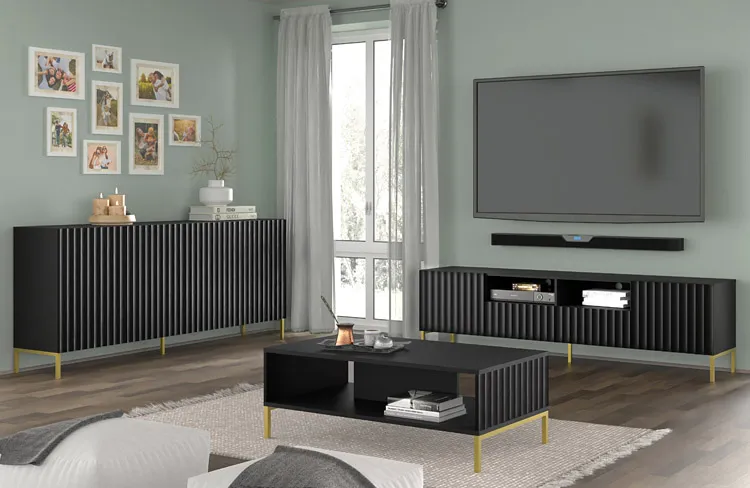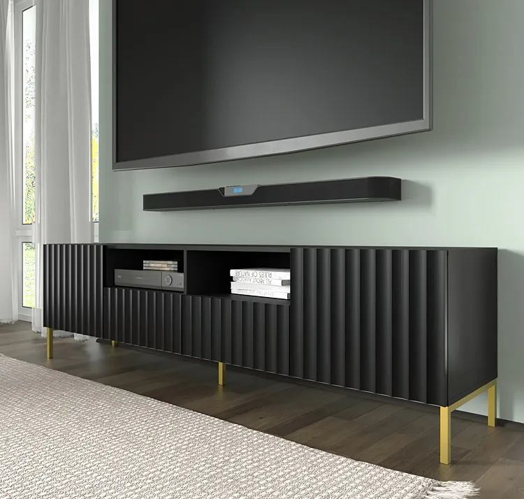 Dotyczy: Lamelowa szafka na telewizor czarny mat + czarne nóżki - Dixter 4X