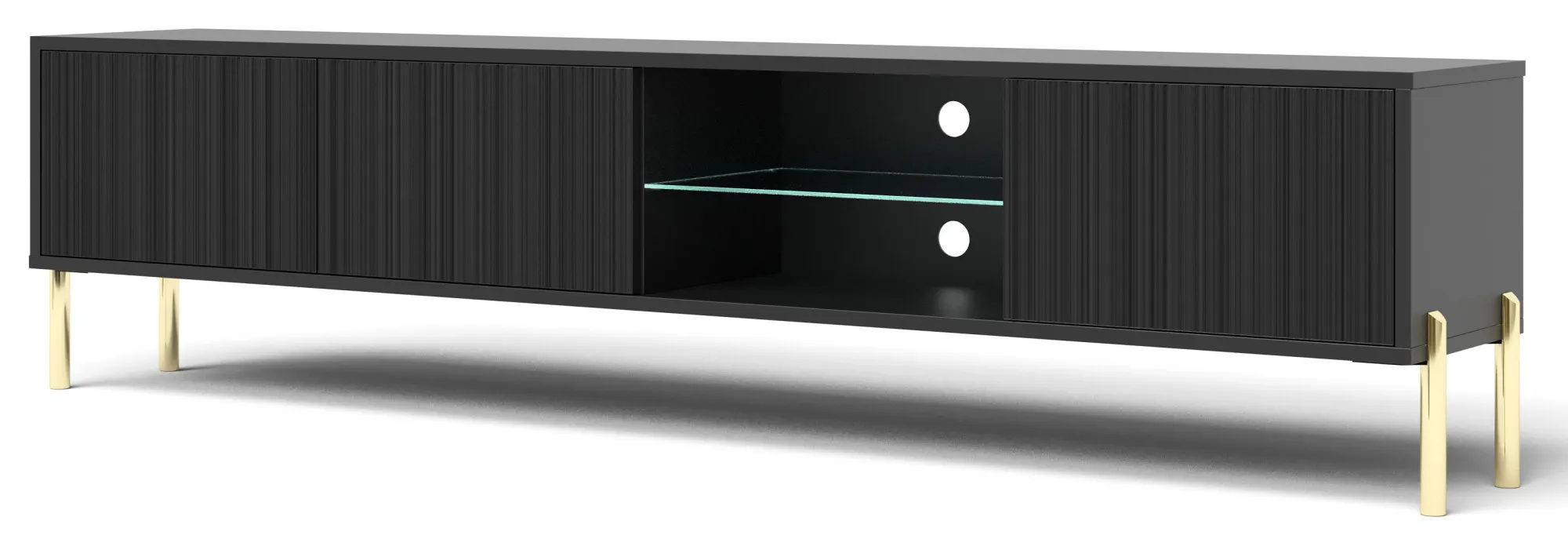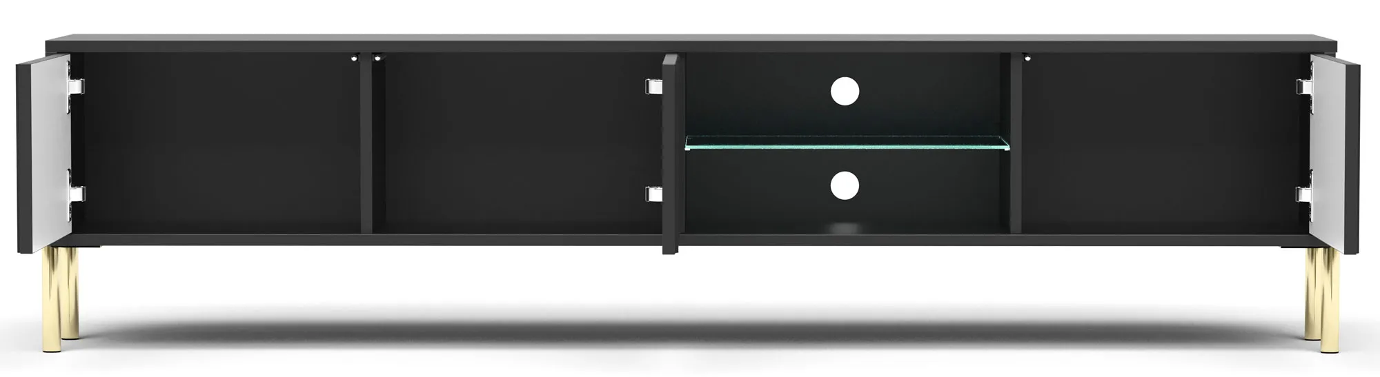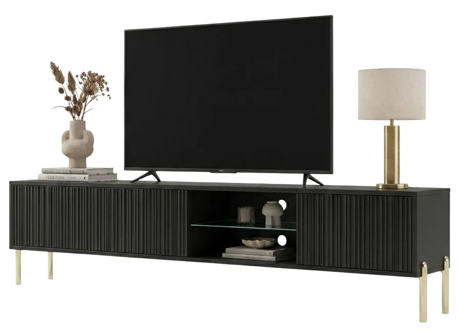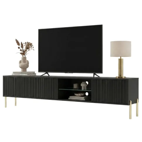 Czarna szafka RTV na złotych nóżkach 175 cm - Murigio 7X