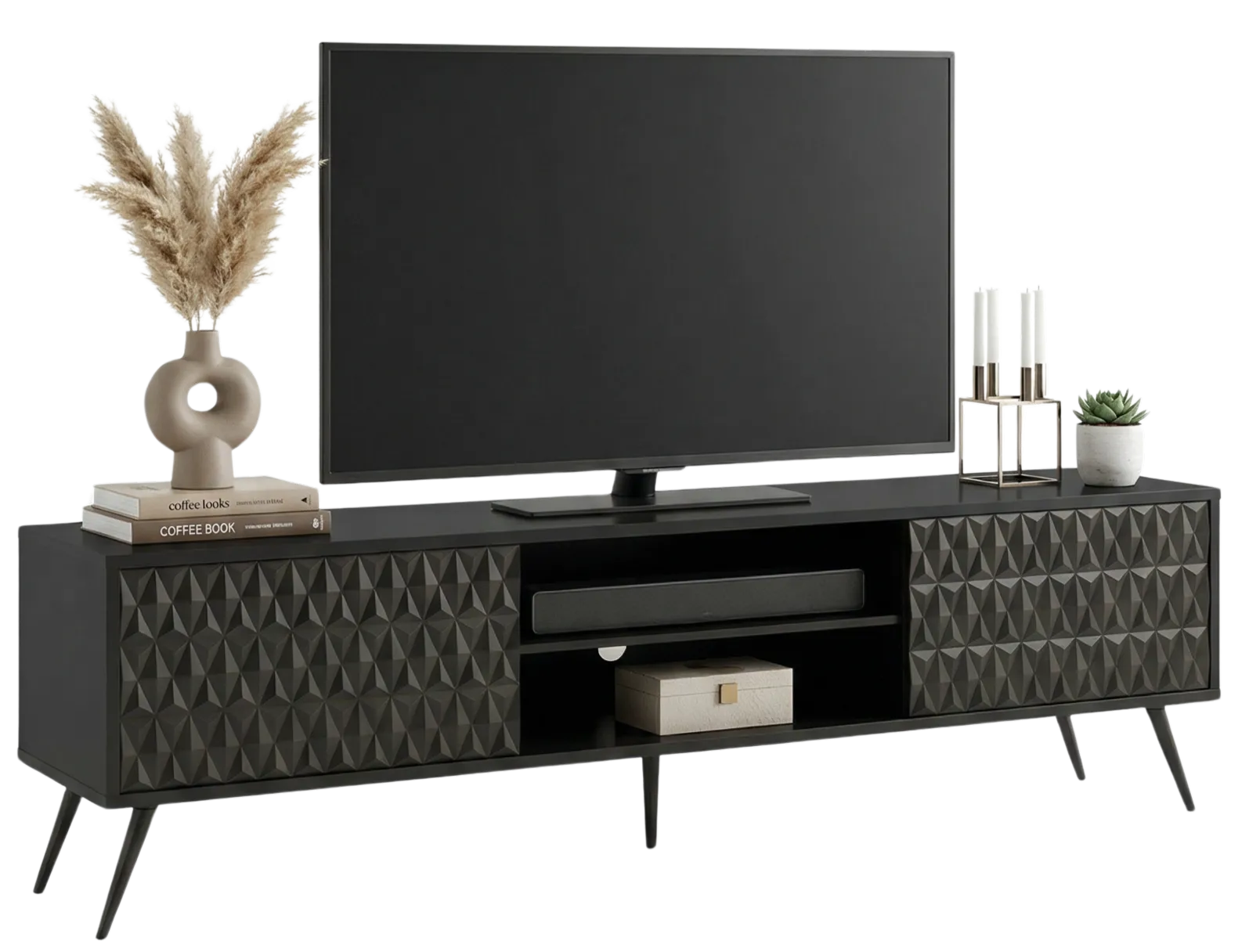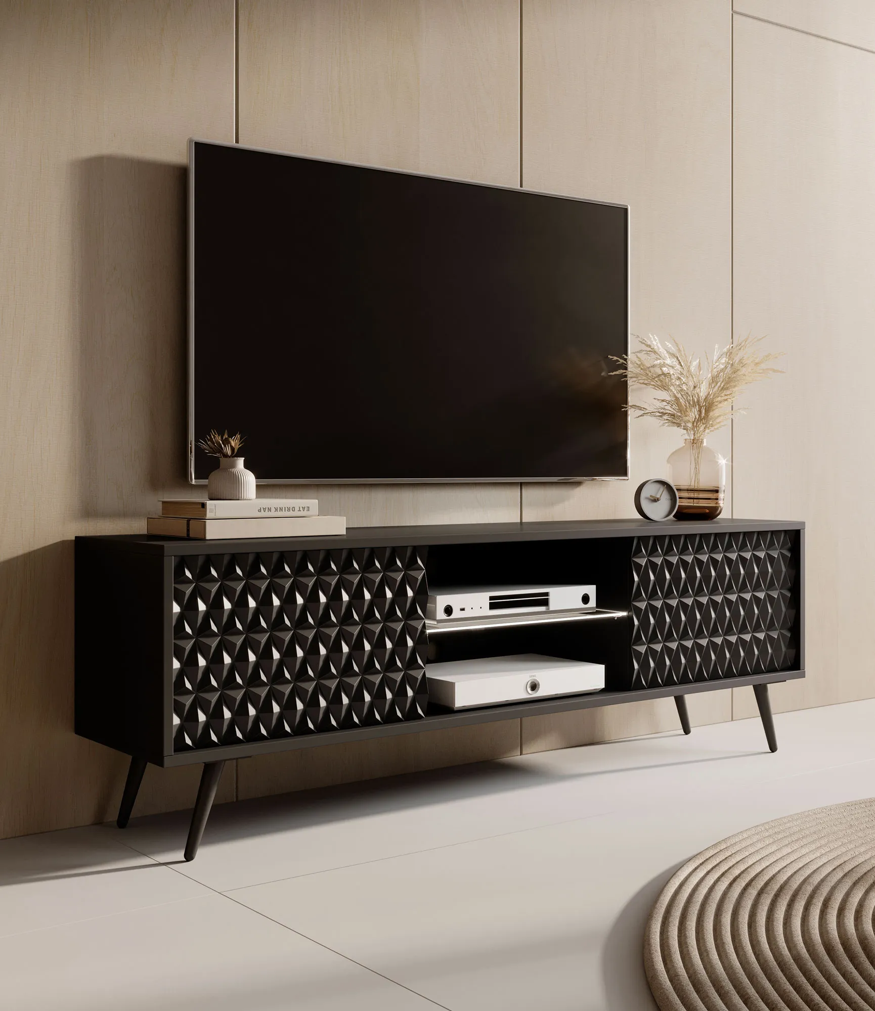 Dotyczy: Czarna ryflowana szafka pod telewizor 175 cm - Riwiso 4X