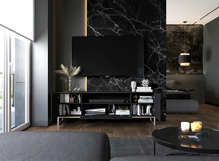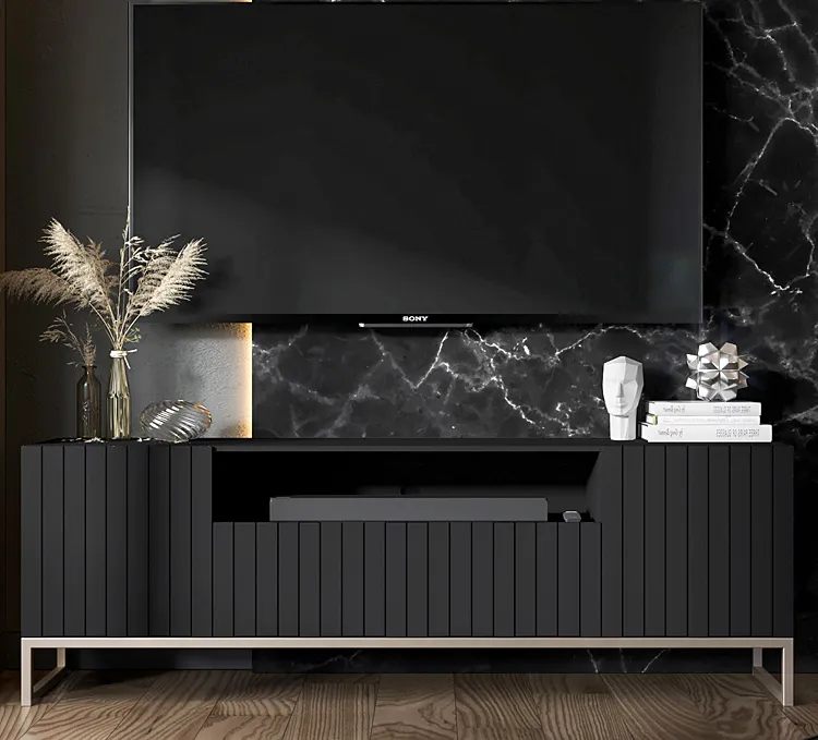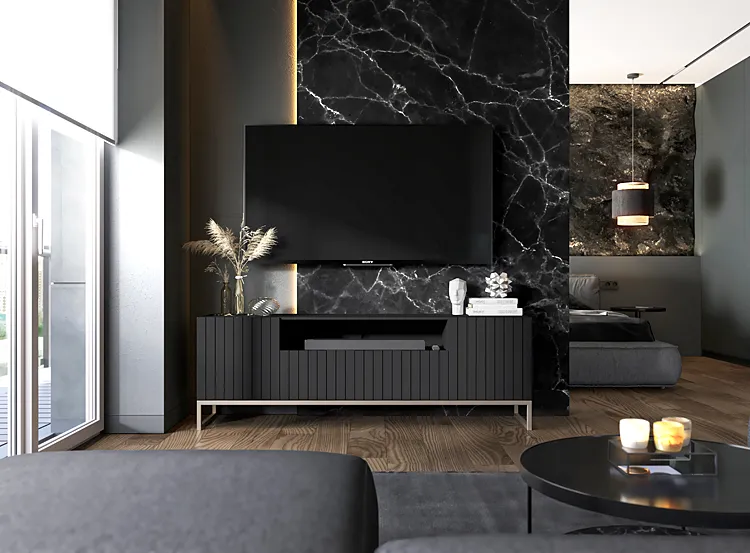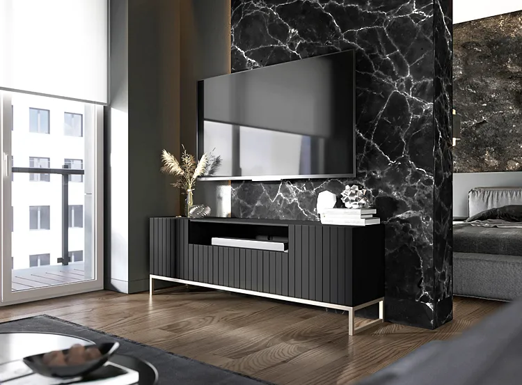 Dotyczy: Granatowa stojąca szafka na TV z lamelami - Filo 7X