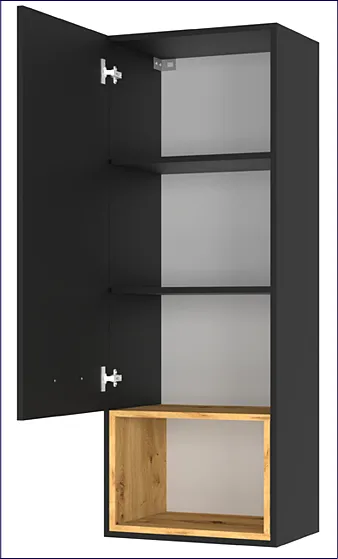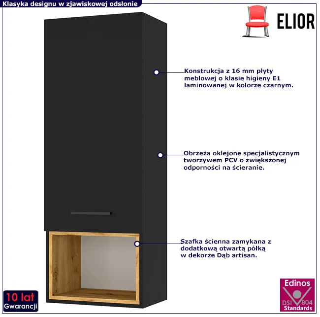 szafka ścienna wisząca w dekorze który w 100% podbił moje serce - nie tylko wygląda zjawiskowo ale w zasadzie dekoruje moją kuchnie, na edinosie złożyłam cały swój zestaw kuchenny i nie pożałowałam bo mimo ze to składak to wcale nie wyszło drogo, pomysł rozbicia czerni drewnem jest znakomity, pozdrawiam Olka