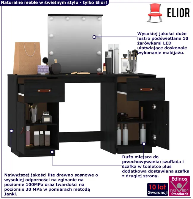 Dotyczy: Drewniana toaletka z lustrem z lampkami miodowy brąz - Nilsa 4X