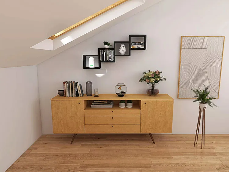Wisząca półka ścienna Megi to doskonały, minimalistyczny mebel, dzięki któremu w łatwy osiągniesz wymarzoną harmonię we wnętrzu. Nietypowa konfiguracja czterech praktycznych półek sprawia, że nie jest to klasyczna "nudna" półka, a oryginalny akcent podkreślający wnętrze w wyjątkowy sposób. Jest idealnym uzupełnieniem zarówno salonu jak i sypialni, pokoju dziecięcego, a nawet kuchni. Dzięki ciekawej konstrukcji świetnie udekoruje problematyczną, skośną ścianę na poddaszu. Lekka wizualnie forma nie przytłoczy wnętrza, a dostępna kolorystyka pozwoli bez problemu dopasować ją do swoich upodobań. Marzysz o eleganckiej i harmonijnej aranżacji? Uzupełnij wnętrze oryginalną półką ścienną Megi i ciesz się porządkiem każdego dnia!