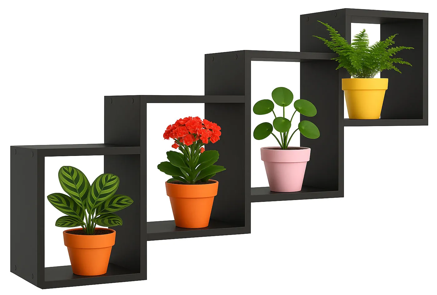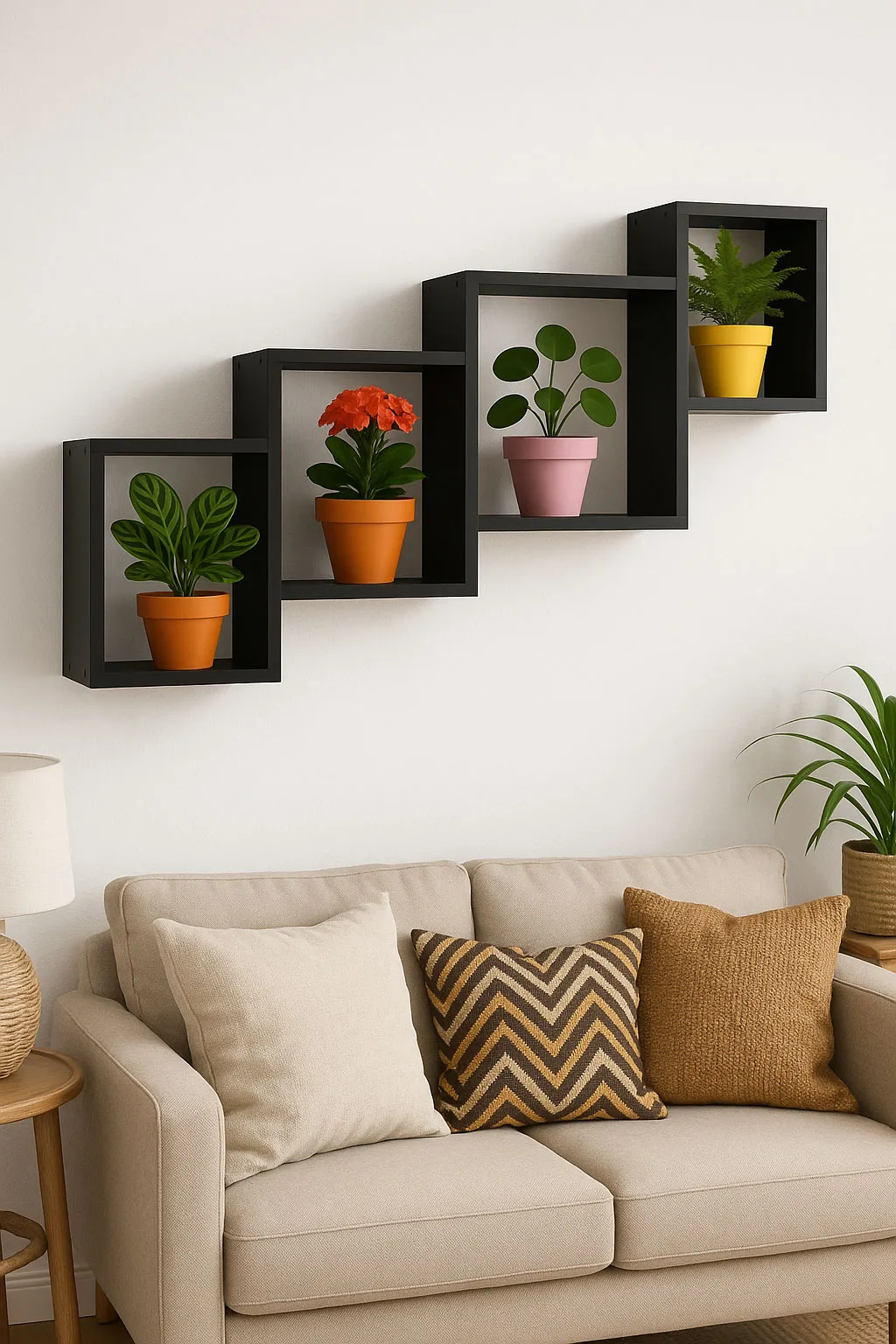 Aranżacja wnętrza z czarną półką na kwiaty Ritta