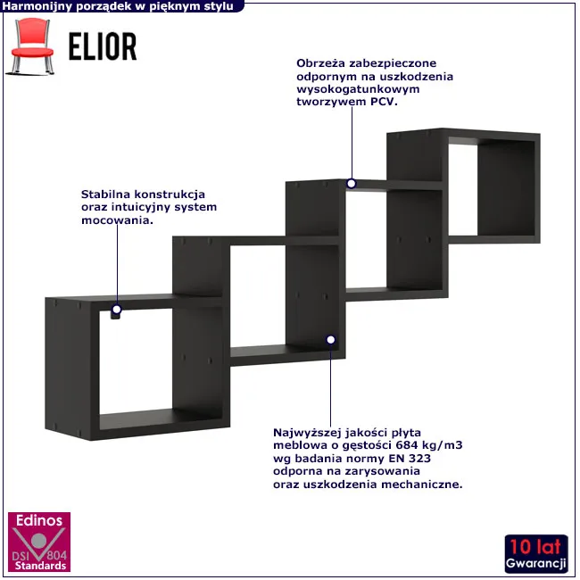 Czarna nowoczesna półka wisząca Megi