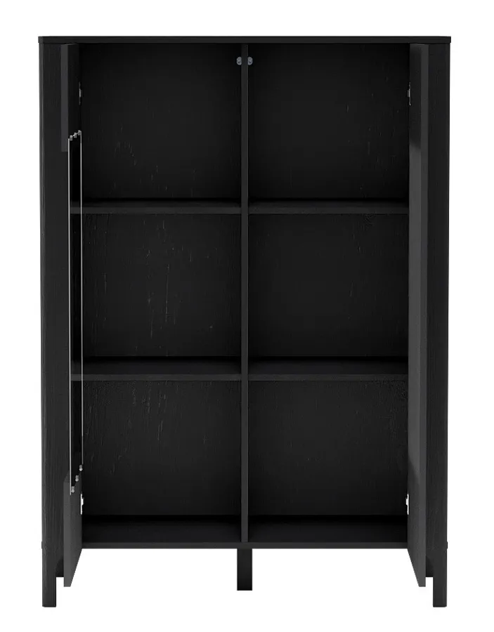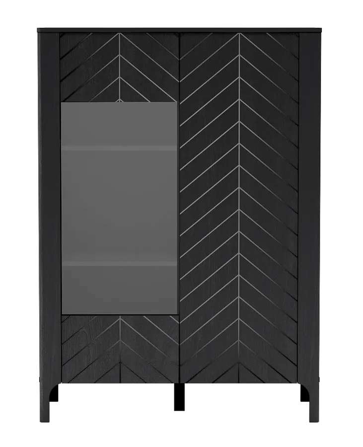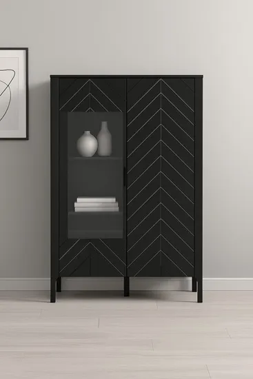 Nowoczesna witryna Sageri 5X to połączenie estetyki i funkcjonalności, które odnajdzie się zarówno w salonie, jadalni, jak i w domowym biurze. Subtelny wzór w jodełkę na frontach nadaje jej oryginalnego charakteru i wprowadza do wnętrza nutę elegancji, nie przytłaczając przy tym przestrzeni. Czarna kolorystyka doskonale komponuje się z nowoczesnymi aranżacjami, podkreślając ich minimalistyczny, a zarazem przytulny klimat. Pojemne półki umożliwiają zarówno praktyczne przechowywanie, jak i stylową ekspozycję ulubionych książek, ceramiki, szkła czy dekoracji. To mebel, który łączy estetykę z użytecznością – i robi to doskonale.
