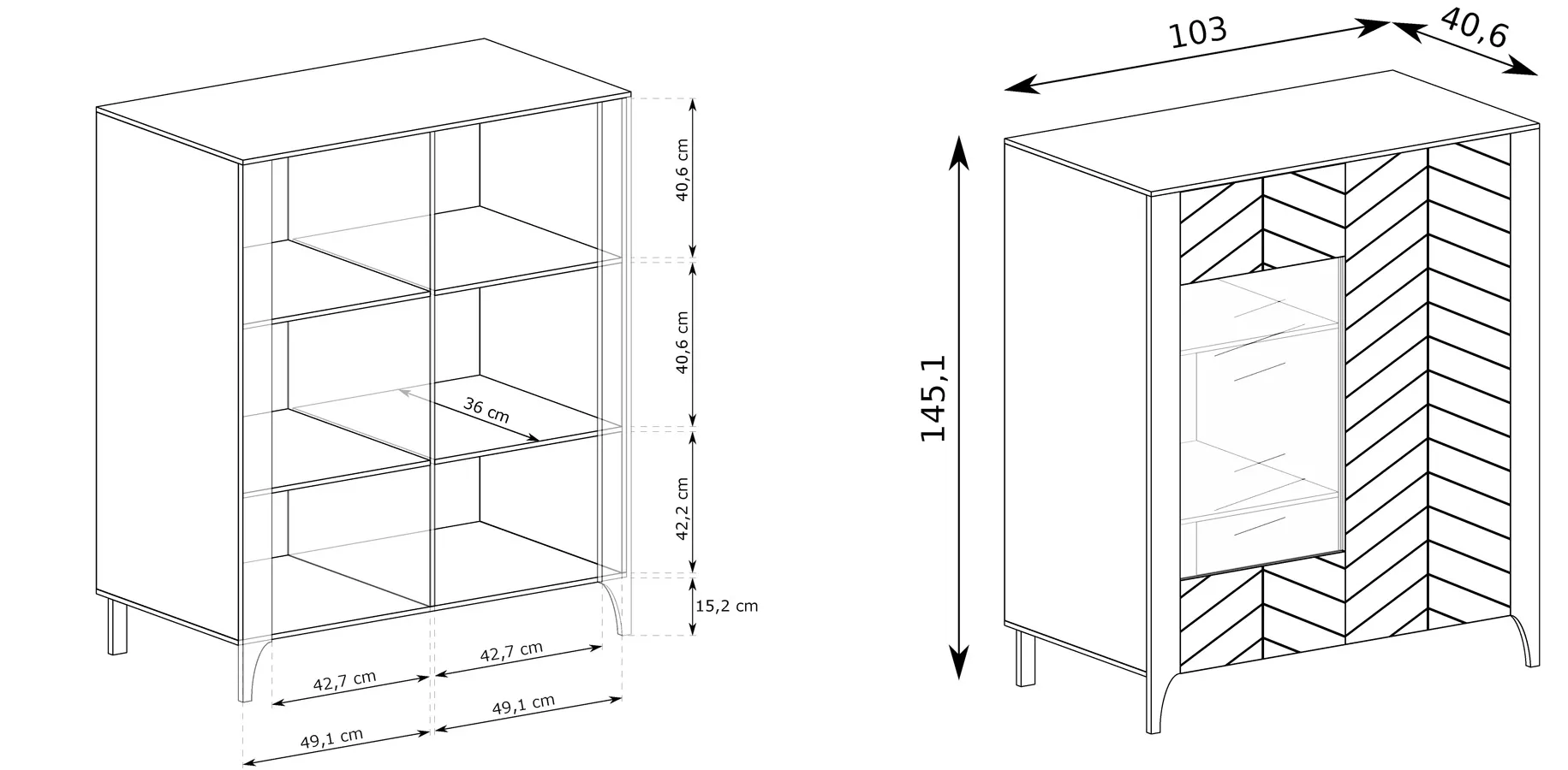 • szerokość 103 cm, wysokość 145 cm, głębokość 40,5 cm