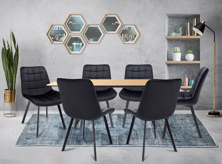 Nowoczesna jadalnia z czarnym eleganckim krzesłem tapicerowanym Igna