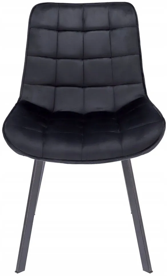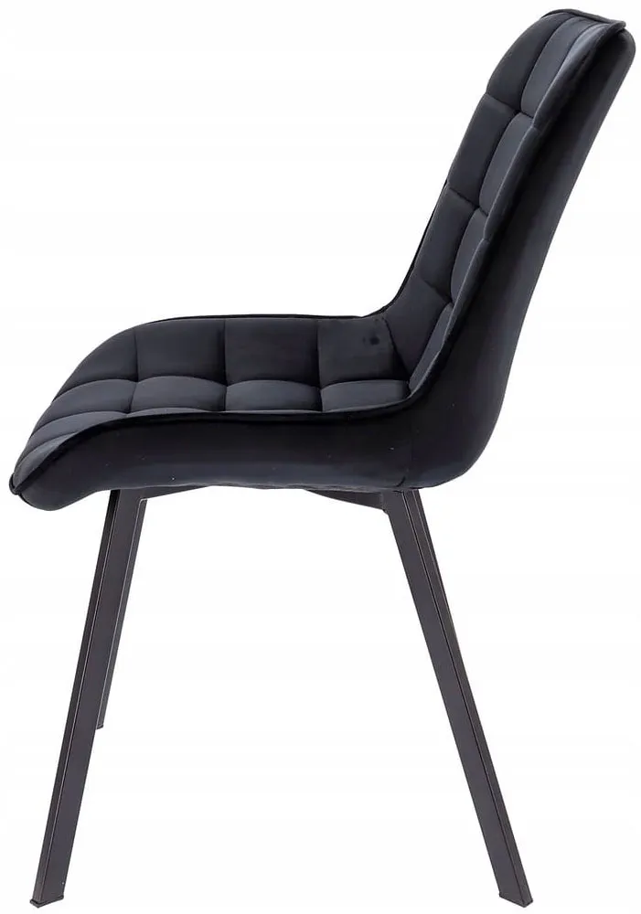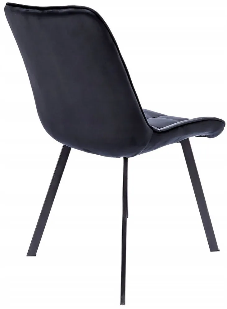 Czarne aksamitne krzesło metalowe pikowane - Igna