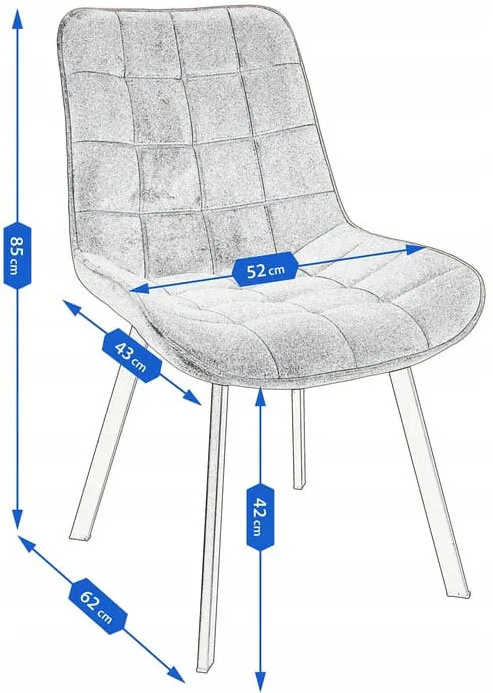 • Unikalny styl: - Pikowane siedzisko i aksamitna tapicerka dodają krzesłu luksusu, a metalowe nogi nadają mu industrialnego charakteru.