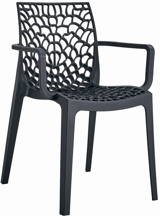 Ażurowe czarne krzesło z podłokietnikami do ogrodu Chamat