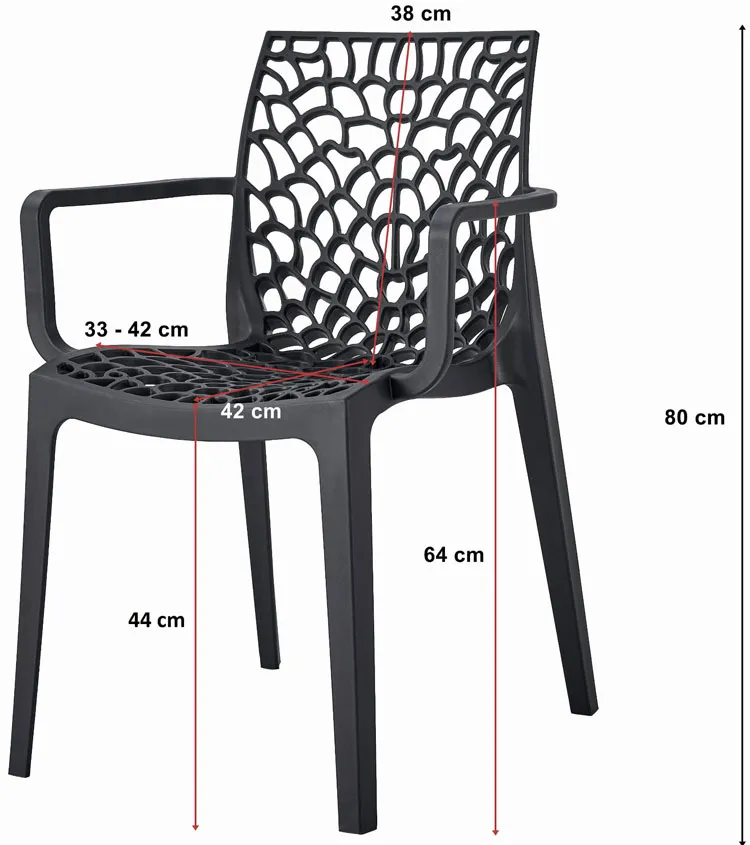Czarne ażurowe krzesło tarasowe z podłokietnikami - Nisa 3X
