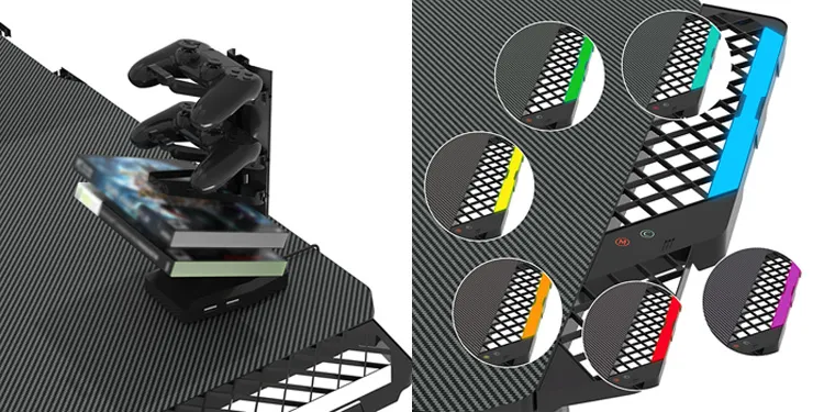• Elegancki wygląd: Wyposażone w oświetlenie LED, nasze biurko gamingowe nie tylko zwiększy komfort Twojego grania, ale także stworzy niepowtarzalny, gamingowy nastrój. Światła LED mogą być dostosowane do Twojego stylu, co pozwoli Ci stworzyć atmosferę idealną dla Twojej ulubionej gry.