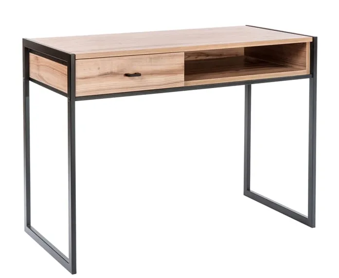 Industrialne biurko Maso 11X to doskonały pomysł marki Elior na aranżację strefy pracy i nauki zgodnie z najnowszymi trendami w aranżacji wnętrz. Prosta forma, oszczędność w detalach i optymalne rozmiary tworzą komfortowy mebel, o designie sprzyjającym atmosferze skupienia i koncentracji. Biurko Maso 11X to na wskroś nowoczesny mebel, który zapewni doskonałe warunki do nauki w pokoju ucznia i studenta. Fantastycznie sprawdzi się w domowym gabinecie. Doskonale zaaranżuje kącik do pracy w salonie lub pokoju dziennym. Stworzy profesjonalne stanowisko pracy w przestrzeniach biurowych. Szeroki blat z praktyczną szufladą zapewnia wystarczająco dużo miejsca na komputer, przybory do pisania, podręczniki lub dokumenty. Minimalistyczny design zestawiony z naturalną kolorystyką blatu w odcieniu wiśnia scandic i klasyczną czernią metalowych profili nie przytłoczy wnętrza, ale nada mu stylowego charakteru z nutką modernistycznej elegancji. Biurko Maso 11X świetnie wpisze się w nowoczesne aranżacje wnętrz spod znaku loft i industrial. Podkreśli niebanalny urok przestrzeni urządzonych stylu skandynawskim, klasycznym lub steampunk. Biurko Maso 11X marki Elior to wybitny model o wyjątkowych walorach użytkowych i dekoracyjnych. Marka Elior słynie z profesjonalnych, doskonałych jakościowo mebli o niesztampowym designie. Zaufały nam już tysiące zadowolonych klientów. Sprawdź ich opinie o naszych produktach, a potem wybierz biurko Maso 11X przekonaj się sam o jego wyjątkowych zaletach!