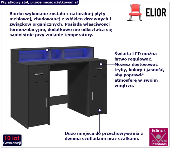 Dotyczy: Biurko podświetlane 120 cm dąb sonoma - Duna