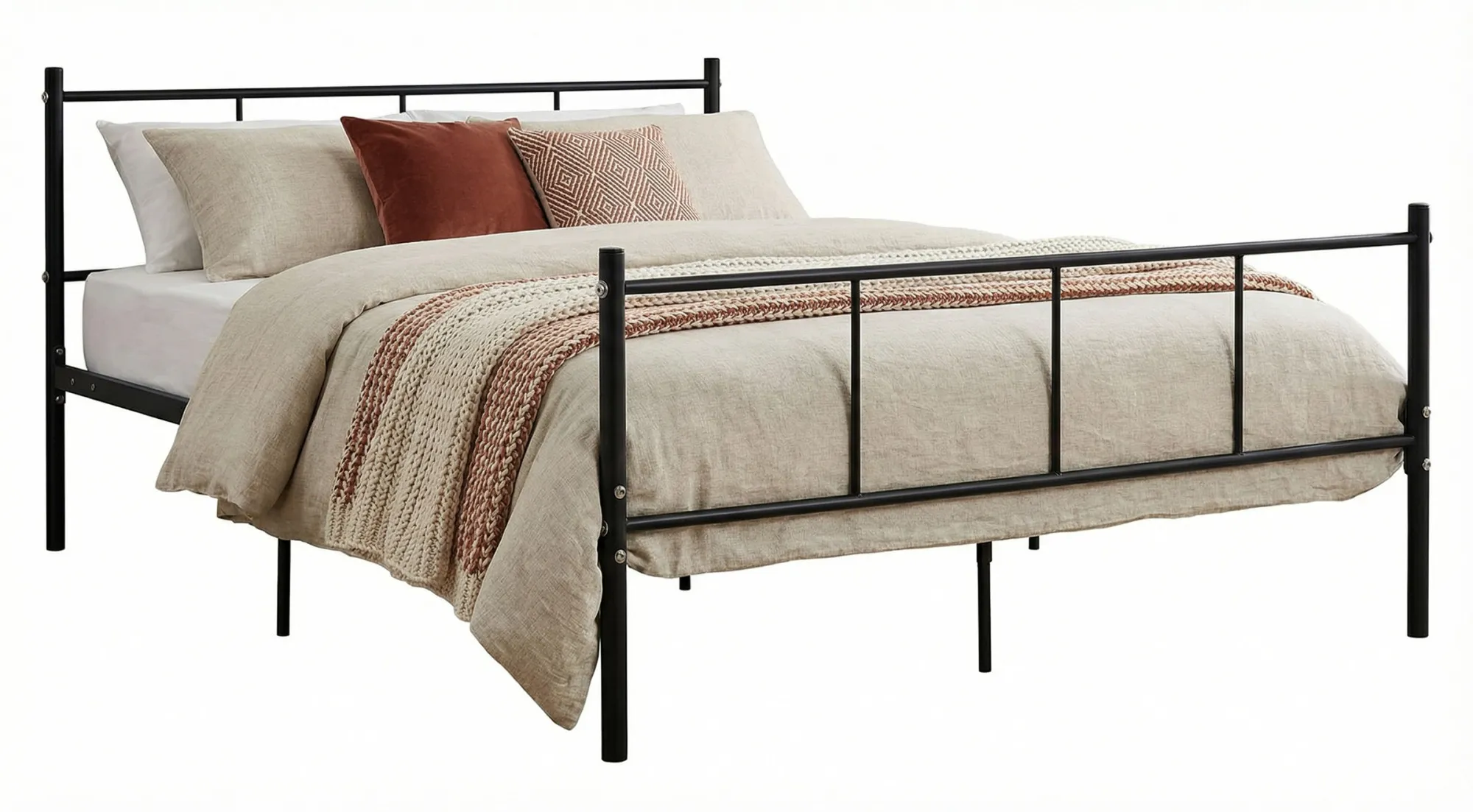 Bardzo eleganckie i solidne łóżko, ta czarna rama wygląda super i pasuje do nowoczesnego wnętrza. Metal jest gruby i stabilny, nic nie trzeszczy podczas użytkowania. Montaż prosty, śruby dobrze pasują. Dostawa sprawna, paczka dobrze zabezpieczona. No nie widzę minusów tego produktu.