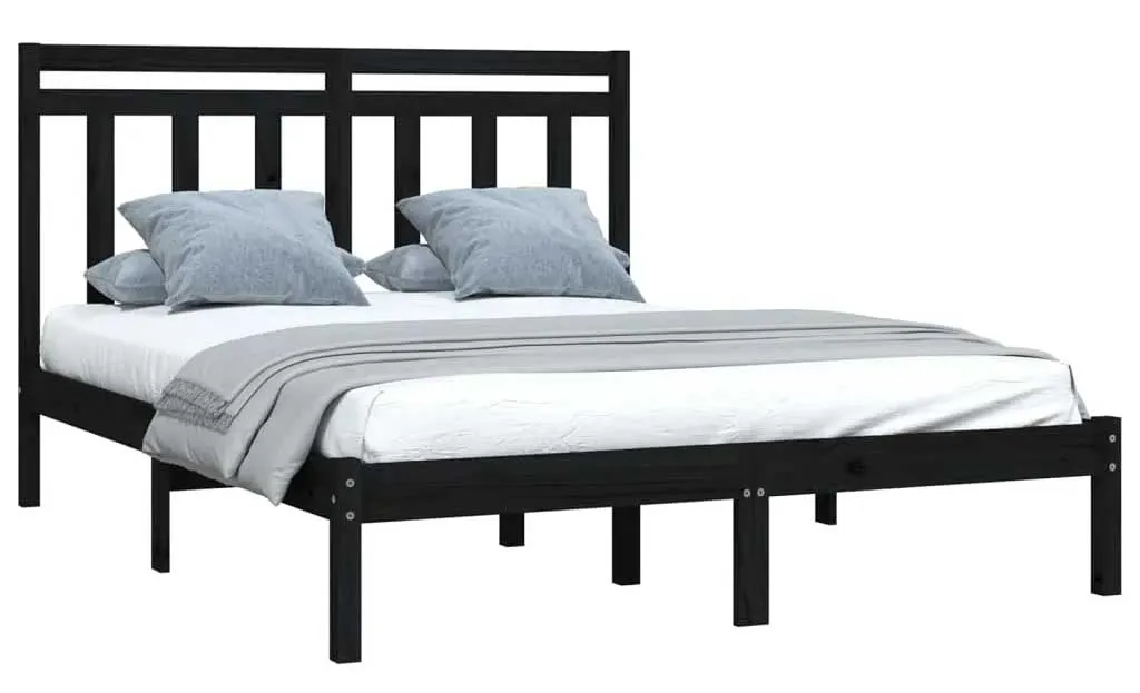 Czarne dwuosobowe łóżko drewniane 140x200 - Miva 5X