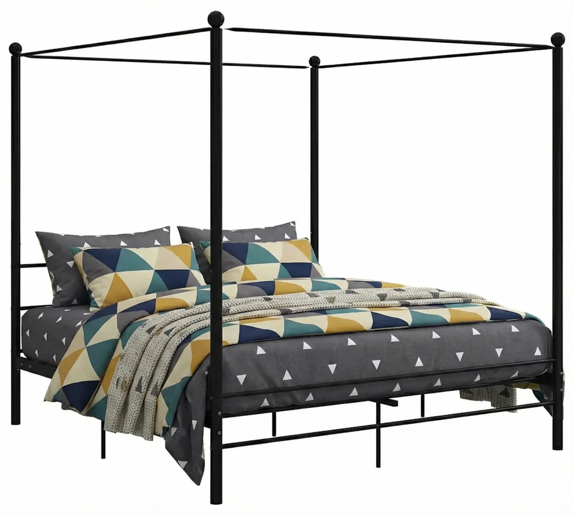 Czarne industrialne łóżko małżeńskie z baldachimem 160x200 cm - Aveiro