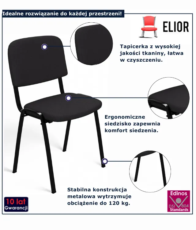 Niezawodne krzesło do biura, sali konferencyjnej lub poczekalni? Krzesło Roniv marki Edinos Premium to połączenie ponadczasowej elegancji, wygody i funkcjonalności. Jego klasyczny design sprawia, że doskonale wpisuje się w każdą przestrzeń biznesową, a solidna konstrukcja gwarantuje trwałość na lata.