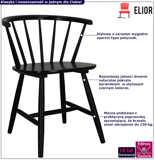 Czarne krzesło drewniane patyczak - Astrin