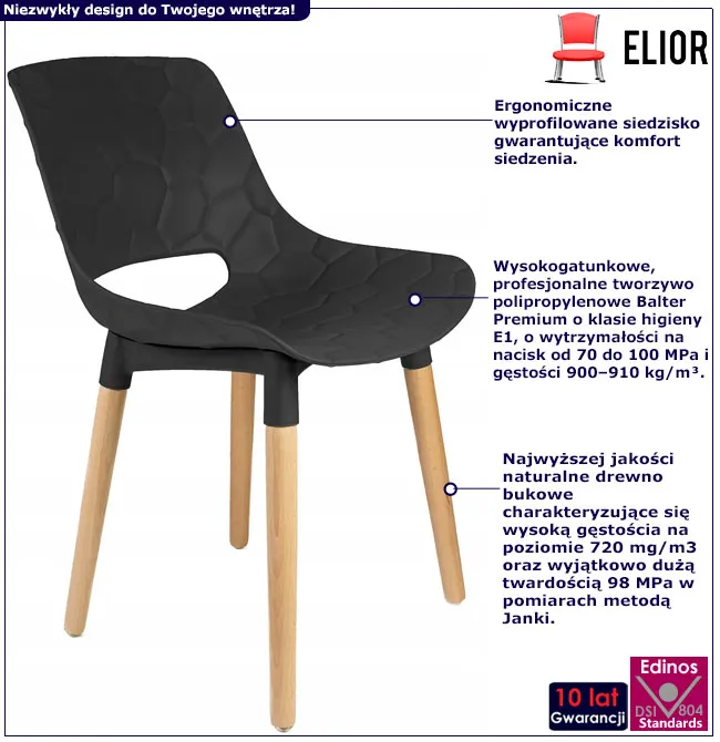 • Nogi z drewna bukowego: Naturalne drewno bukowe to nie tylko estetyka, ale przede wszystkim stabilność i solidność krzesła.