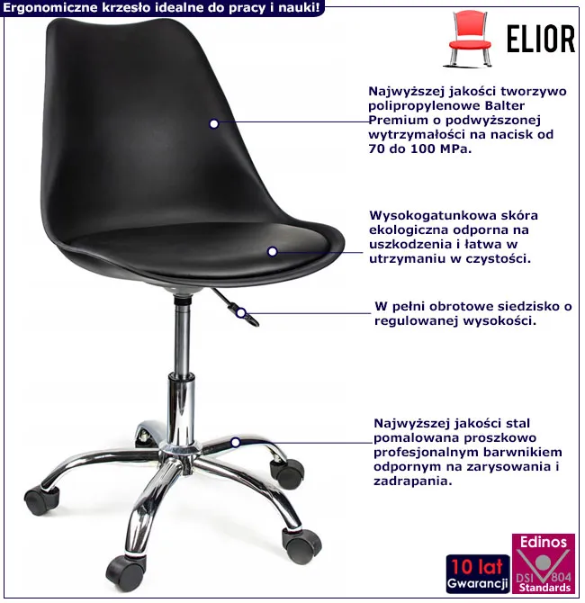 Dotyczy: Białe krzesło na kółkach z czarną poduszką - Tunier 3X