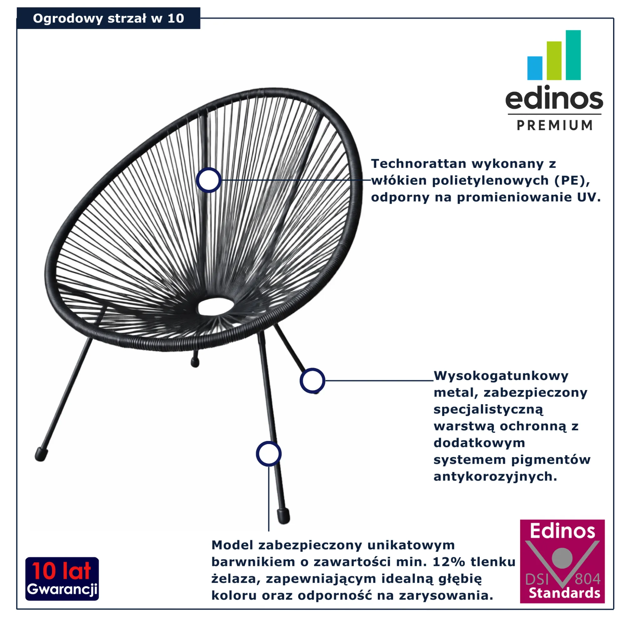 • Gwarancja: 10 lat (inni producenci oferują maksymalnie 24 miesiące gwarancji. Tylko u nas otrzymujesz pełną jakość potwierdzoną aż 10-letnią gwarancją).