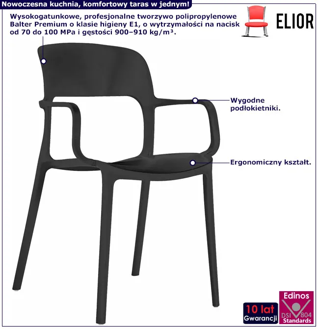 • Modny kolor: czarny. Kliknij w link i sprawdź także inne krzesła tarasowe w sklepie Edinos.pl. Stwórz swój praktyczny zestaw mebli.