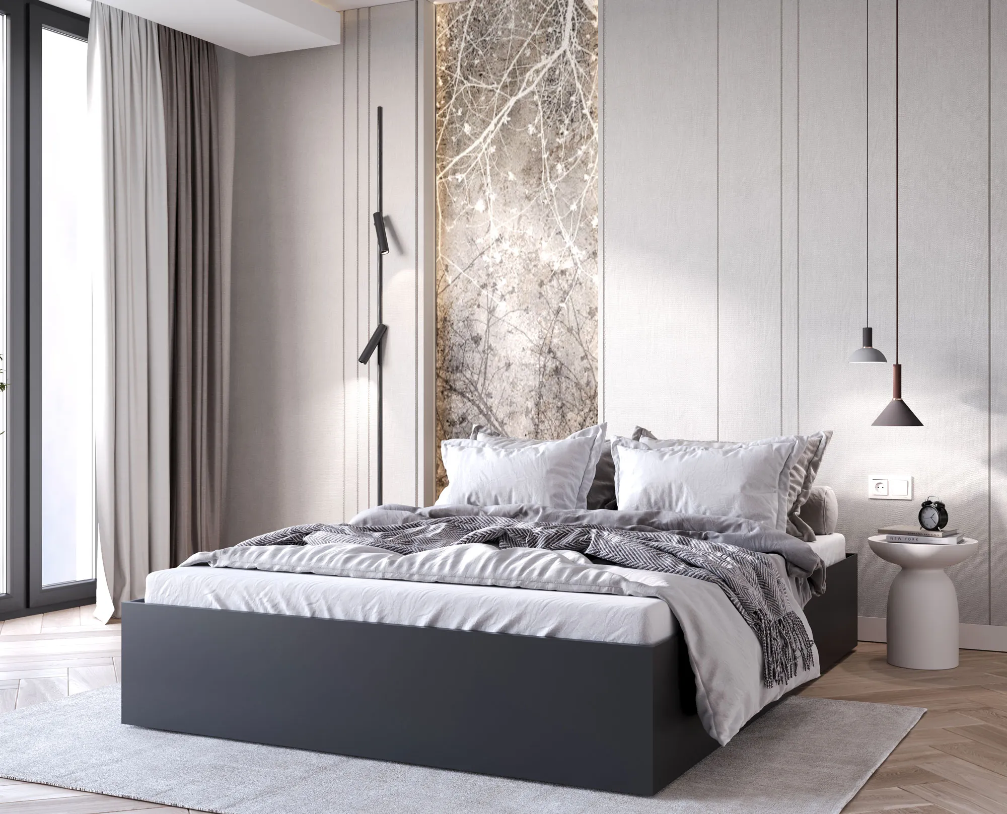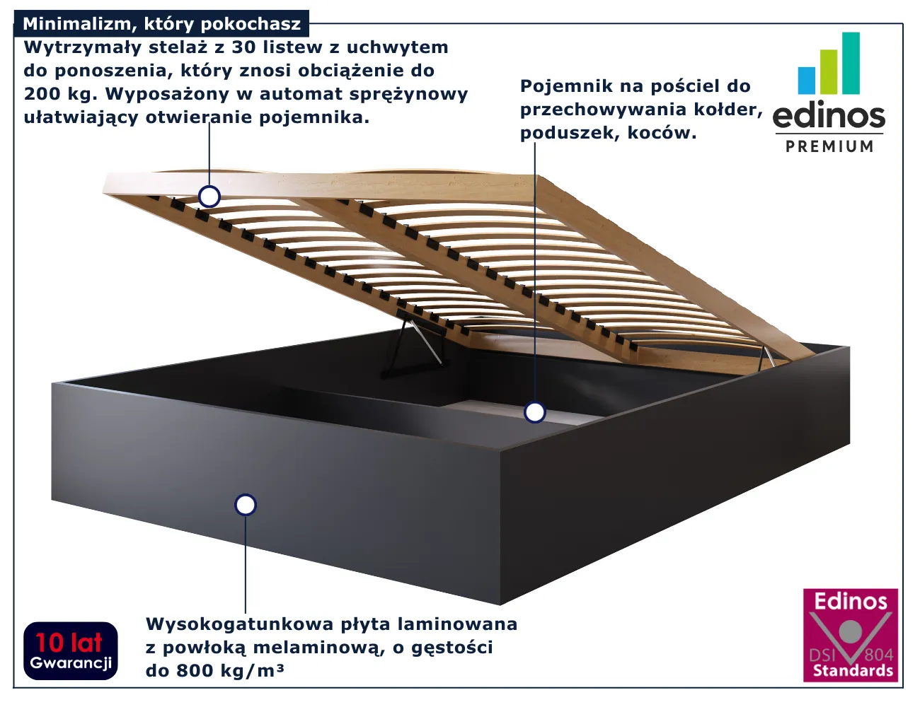 Dotyczy: Czarne łóżko z pojemnikiem na pościel 160x200 - Niri 3X