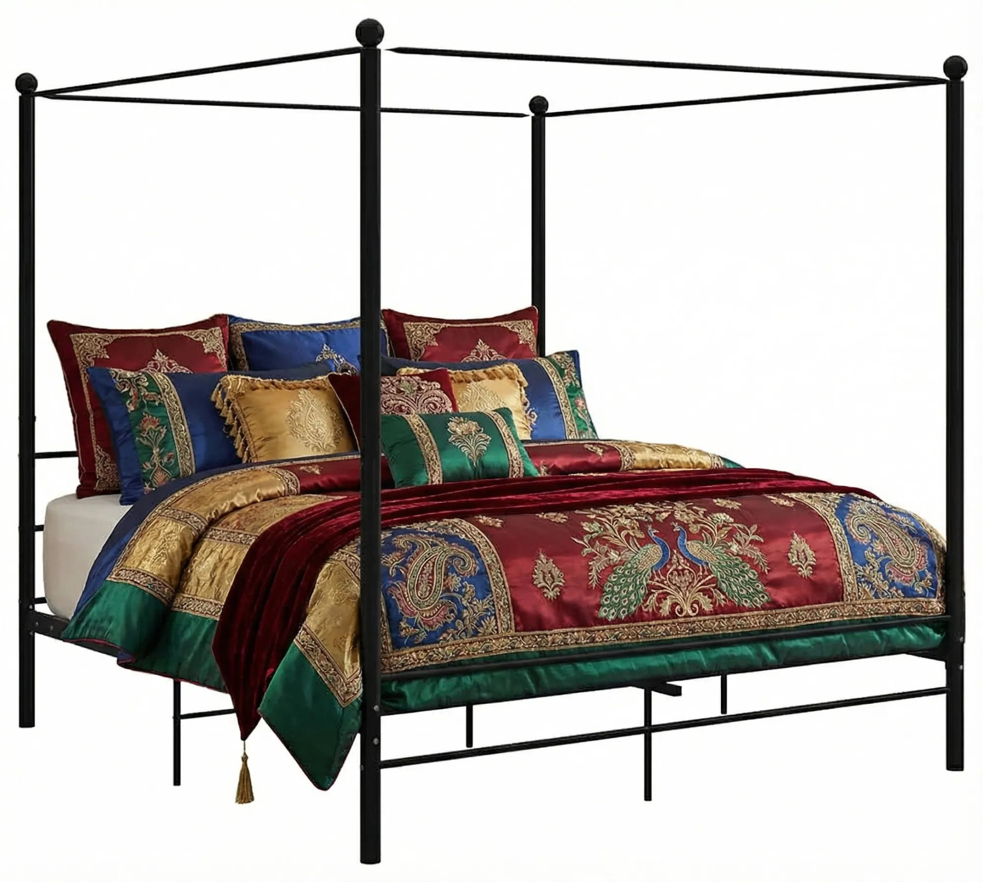 Czarne duże metalowe łóżko z baldachimem Aveiro