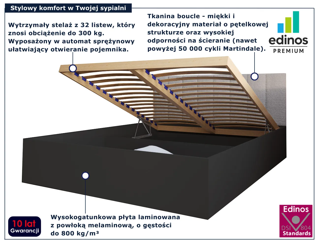 Dotyczy: Białe dwuosobowe łóżko z zagłówkiem boucle 140x200 - Berigi 3X