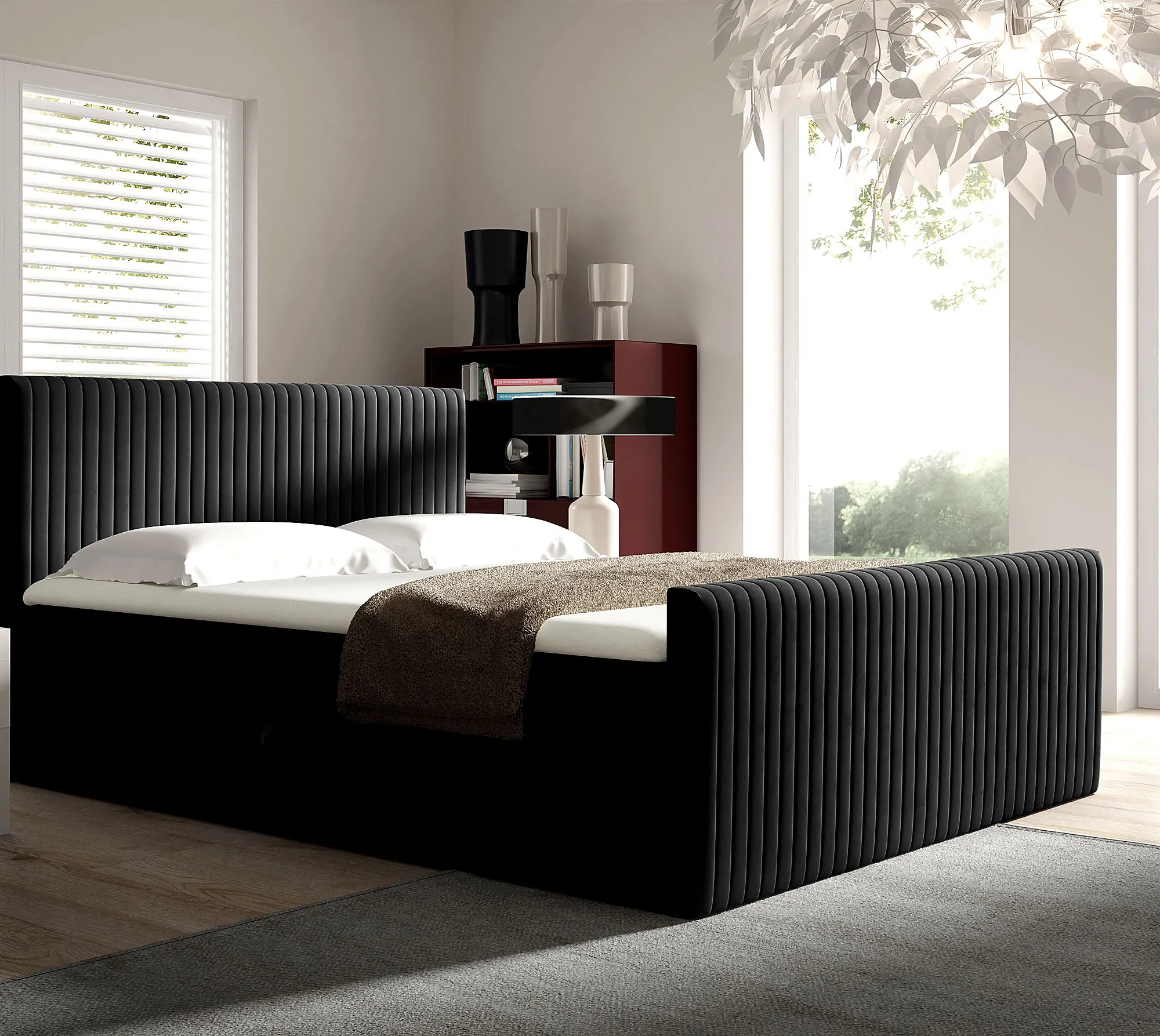 Dotyczy: Szare pikowane łóżko kontynentalne z pojemnikiem 5 rozmiarów - Naverro