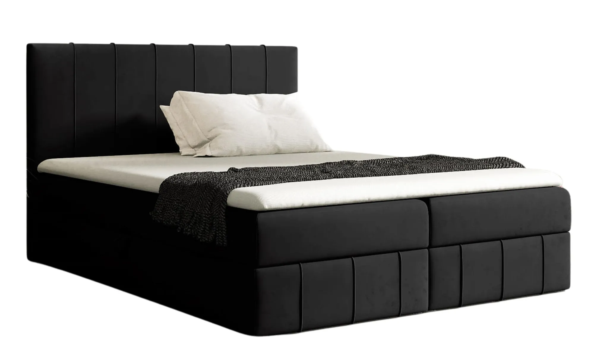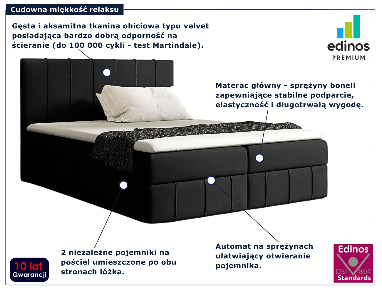 Czarne łóżko kontynentalne z pojemnikiem 5 rozmiarów - Elarivo