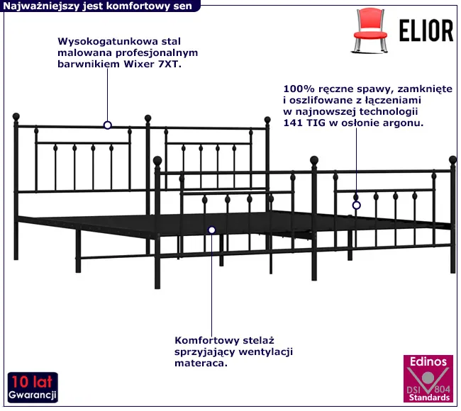 • Kolor: czarny. W naszej ofercie posiadamy także inne łóżka metalowe.  Kliknij i stwórz swój wyjątkowy zestaw mebli.