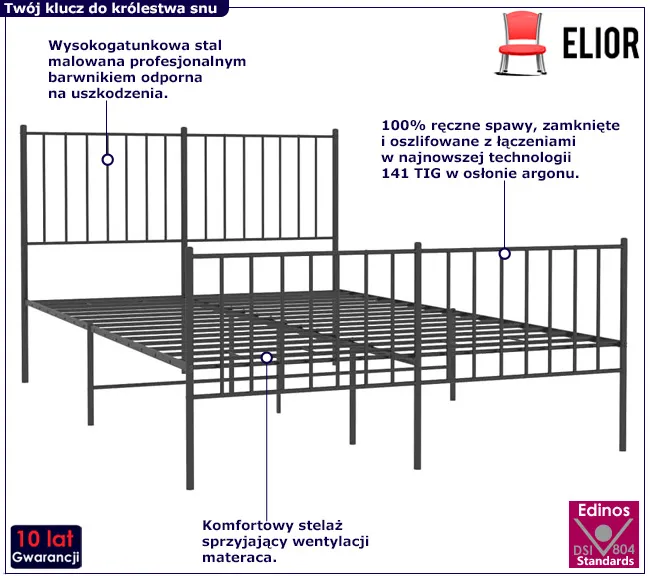 Dotyczy: Białe metalowe łóżko małżeńskie w stylu loft 160x200 cm - Fiver