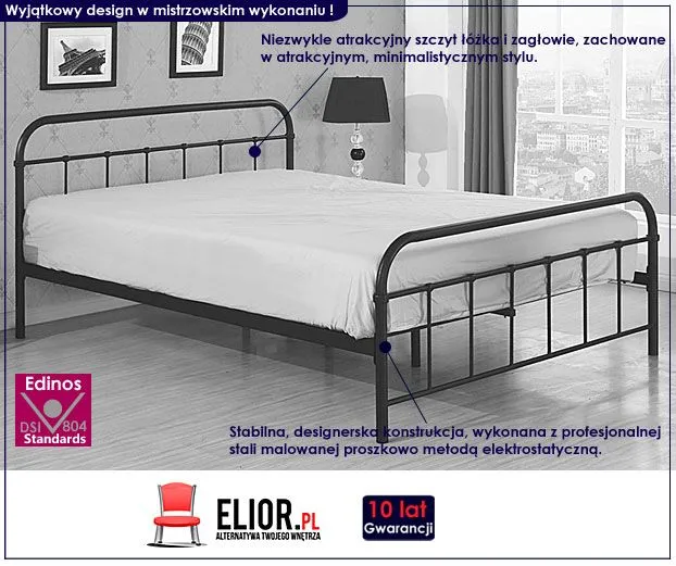 Łóżko metalowe dla chłopca Whitor o wymiarach 120x200 marki Edinos Premium prezentuje się niebywale atrakcyjnie tworząc modne, minimalistyczne wizualnie i jakże atrakcyjne miejsce na jego wieczorne pomysły, inspiracje i codzienne fantazje. Zaprojektowane  z myślą o zadowoleniu wszystkich, którzy oczekują od łóżka czegoś więcej niż tylko niezawodnego spełniania jego podstawowych funkcji. Ulubiona książka a może wypoczynek z kolegami przy filmie lub grze? Whitor pozwoli Ci inaczej odczuć jego ulubione chwile w łóżku i nada prawdziwego smaku dla Waszego wypoczynku.