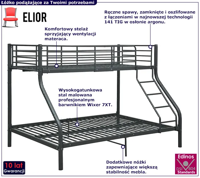 Dotyczy: Szare metalowe wspólne łóżko piętrowe dla rodzeństwa 140x200 cm/90x200 cm - Extim