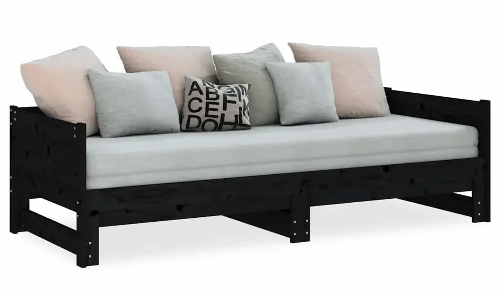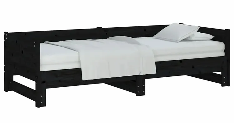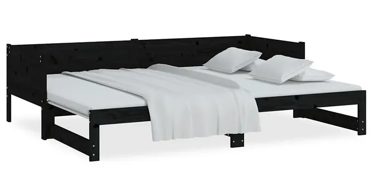 Czarne łóżko rozsuwane sosnowe 2x(90x200) cm - Eluwin 4X